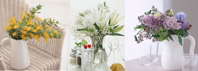サイズが同じくらいのものにしましょう。 ピッチャーで活けるとこんな感じ。