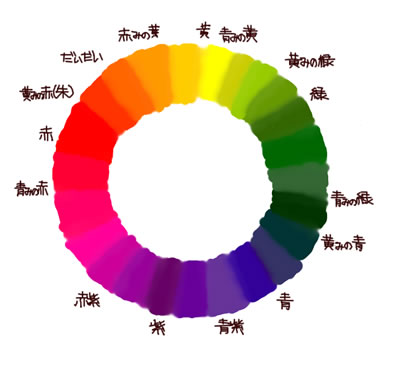 ここでもういちど、「色相環」 を見ながらどうぞ。