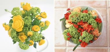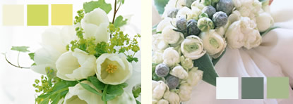 花をあわせる場合は、葉もの・グリーンの色がとても重要になってきます。