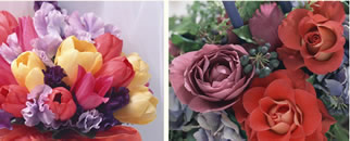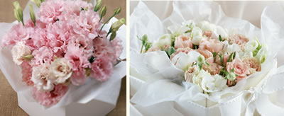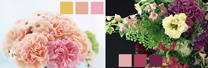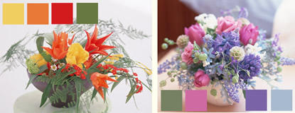 花束の場合はラッピングペーパーやリボン、 家で飾る花なら花を活ける器の色・壁の色・・・