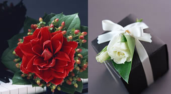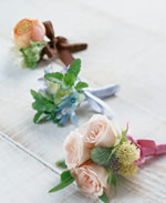 黒っぽい服のコサージには、明るい色が映えますよ!