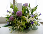 顔が見えるように低くしたアレンジ。 食事会のテーブル・講演時の壇上などに飾るための形で、一般的にはあまりなじみがない。