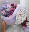 いわゆる「ブーケ」「ミニブーケ」と呼ばれるころんと丸い花束。 15〜30cmくらいの球状。最近の花束の主流の形になってきている。