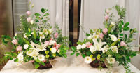 ご自宅で行う場合は、ひとつ5,000〜10,000円くらいのアレンジメントを 対(左右対称に2個)で用意するのがおすすめです。