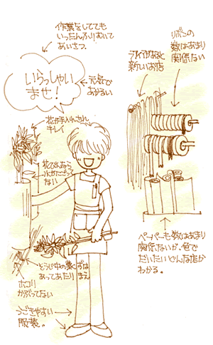 ------------------------------ *お花屋さんへ* こうでないお店が全て悪質、という意味ではなくて、これは「逆引き法」の紹介です。 この基準のお店であれば、大事な贈り物の花で悲しい思いをする確率が少ない。という意味で掲載しています。 お店に入ってからこのような嫌な思いはしたない><という消費者の方々の声にこたえて、店に近づく前・店に入る前に「気持ち良く買い物ができる事が ”予測できる” お店」 に共通する項目を挙げたものです。