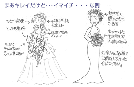 ただ、値段と 「ゴージャスに、(まあるく)」という情報しかないと、 ドレスも花もキレイでも、 「ちょっとビミョー」・・・